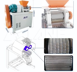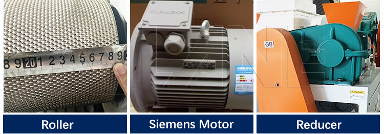 4. Se puede añadir un dispositivo de dispersión en la entrada y la salida para evitar que las materias primas y los productos finales se peguen entre sí, y se añade un dispositivo de dispersión debajo del cilindro para evitar que los materiales se peguen al cilindro.